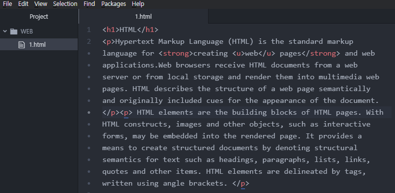 <br> 태그의 경우 1줄 줄바꿈만 가능하지만, HTML에는 단락을 나눌 수 있는 태그도 있다.