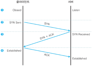 - 3-way-handshake를 통해 클라이언트와 서버 간에 요청을 확인하고 승낙하는 작업을 거친다.