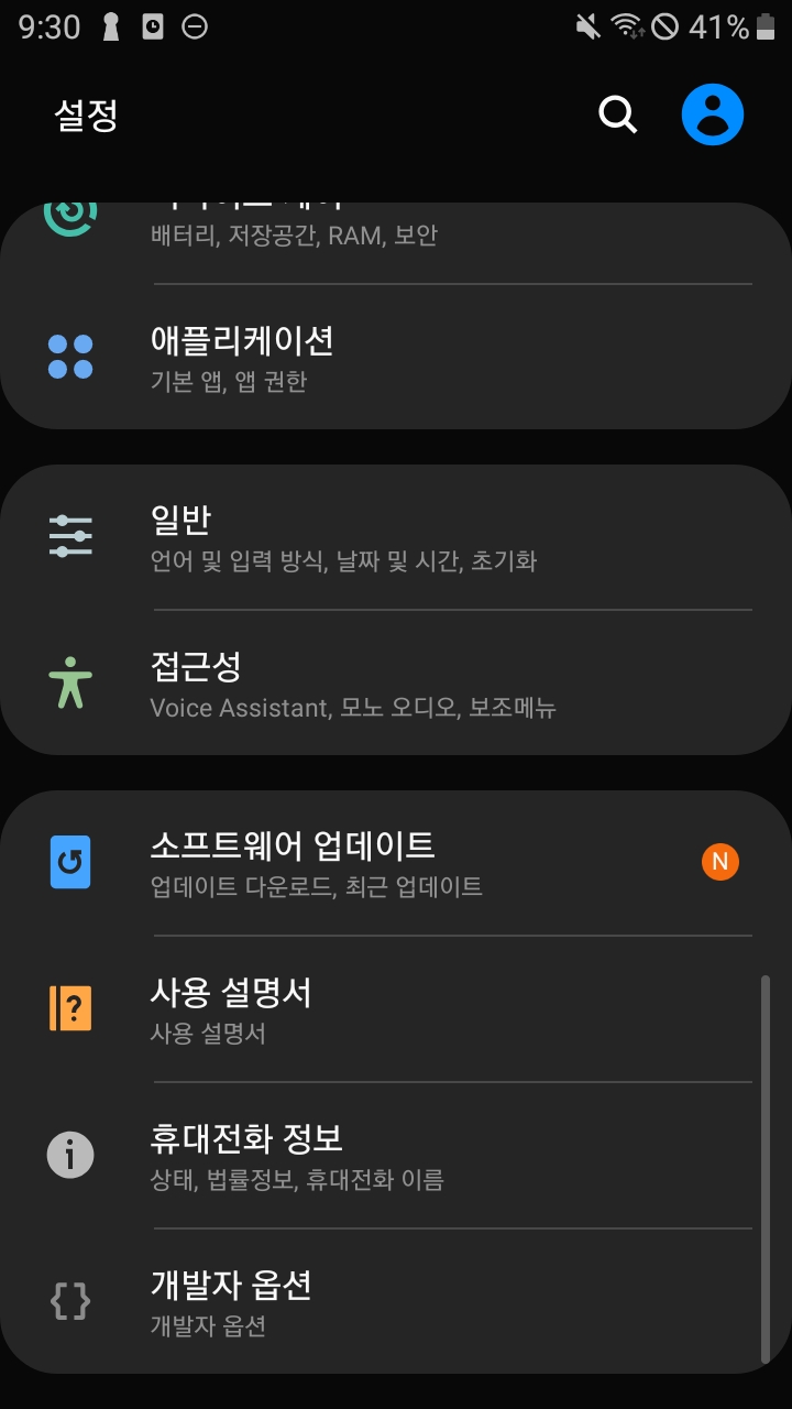 위 사진과 같이 맨 아래에 개발자 옵션이라는 탭이 새로 생성된 것을 볼 수 있다.