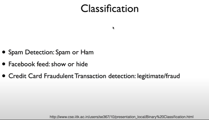 이전에 배운 regression은 어떤 숫자를 예측하는 것이었음. 이번에 배울 classification은 binary classification이라고도 불리는데, 이는 이름에서 알 수 있듯 2개 중 하나를 고르는 것을 의미함.