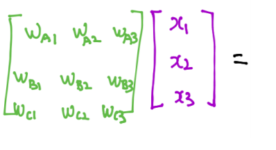 행렬의 곱을 적용시키면 HA(x) 값인 YA햇을 구할 수 있게 됨.