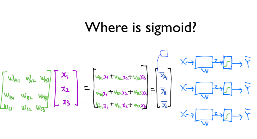 앞에서는 sigmoid 모듈을 적용시켰는데, 위에서도 각각의 sigmoid를 적용시킬 수 있음. 하지만 이 역시 보다 효율적으로 적용할 수 있는 방법이 있음.