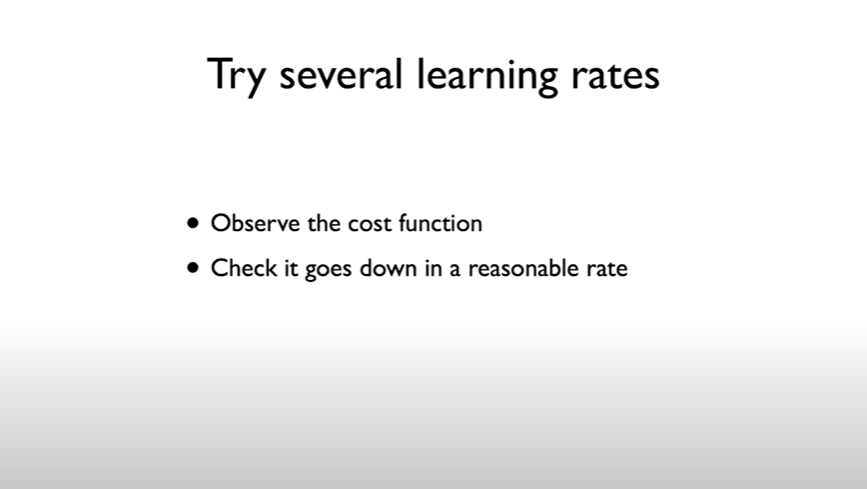 그래서 learning rate의 값을 적절하게 선택하기 위해서는 훈련 중간에 cost 함수를 출력해본 뒤 거의 변화가 없다면 learning rate의 값을 조금 키워서 훈련시켜보는 것이 좋음.