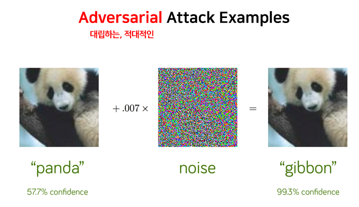 Adversarial이라는 단어는 대립하는, 적대적인 이라는 뜻을 가지고 있다. Adversarial attack은 사람이 인식하지 못할 정도의 특정 노이즈를 더하여 다른 이미지를 생성하고, 최신 분류 알고리즘들에게 혼란을 주는 공격방식을 의미한다.