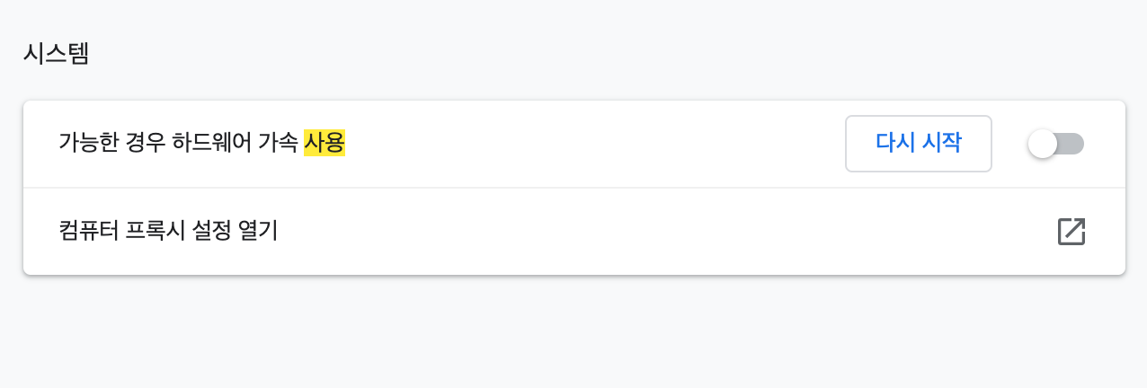 크롬 setting에 들어가서 하드웨어 가속 Off 설정