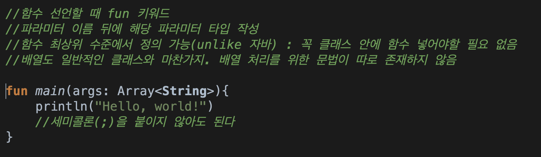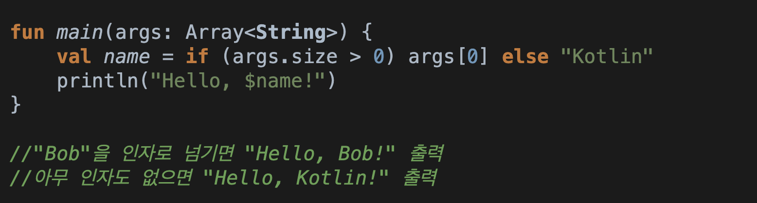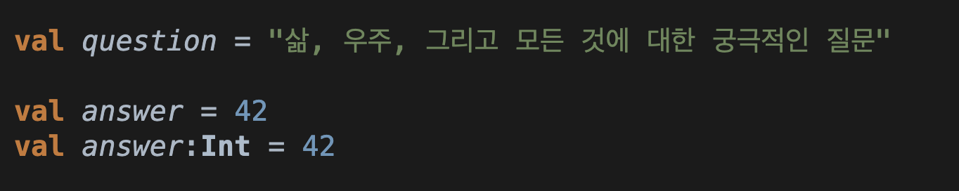- 코틀린에서는 한글을 식별자로 사용할 수 있어 변수 이름에 한글이 들어갈 수 있음