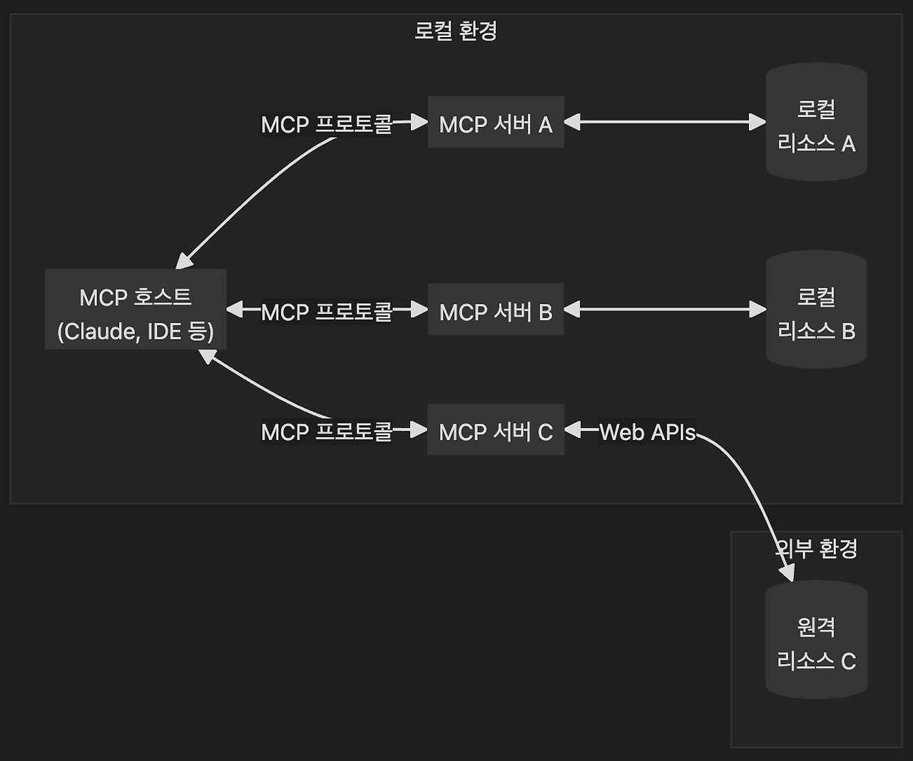 MCP는 호스트 애플리케이션, 클라이언트, 서버 간의 표준화된 프로토콜을 제공하여, 안전하고 효율적으로 데이터와 기능을 교환할 수 있도록 한다.