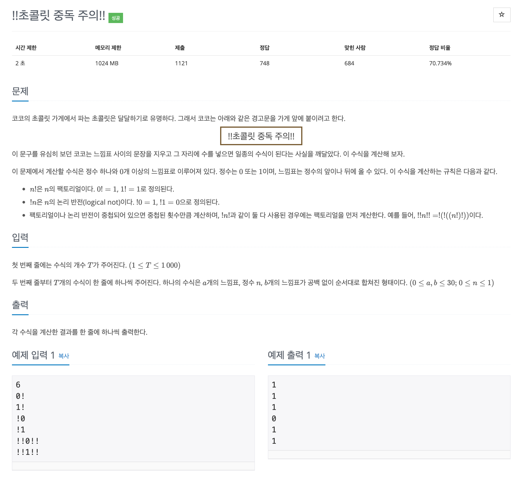 우선 처음 문제를 봤을 때 지레짐작으로 문제를 잘못 생각한 부분이 있다. 예제 입력에서 입력값이 7개인데 예제 출력에서는 6개만 입력이 되어서 '아~ '6'과 같이 0과 1이 아닌 숫자를 입력하면 아무것도 출력되지 않는구나' 라고 혼자 단단히 오해를 했다. 이 것 때문에 문제를 더 복잡하게 풀었는데, 나중에 뭔가 이상해서 다시 문제를 읽어보니.. 맨 윗줄의 입력값은 수식의 개수 T를 의미하는 것이었다.. 문제를 제대로 읽자....ㅎ.ㅎ