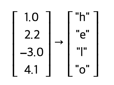 위의 그림과 같이, 한 번에 한 문자씩 RNN에 입력할 것이다. ("h", "e", "l", "l") 각 문자는 one-hot encoding을 통해 one-hot 벡터로 인코딩되며, 어휘의 각 고유한 문자에 대하여 벡터의 고유한 비트 하나만 켜진다.