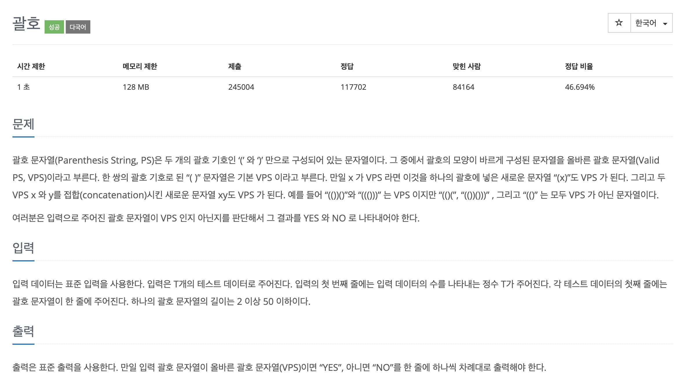 4. 문자열을 전부 확인했는데 stack에 남은 괄호가 있으면 VPS가 아니다.