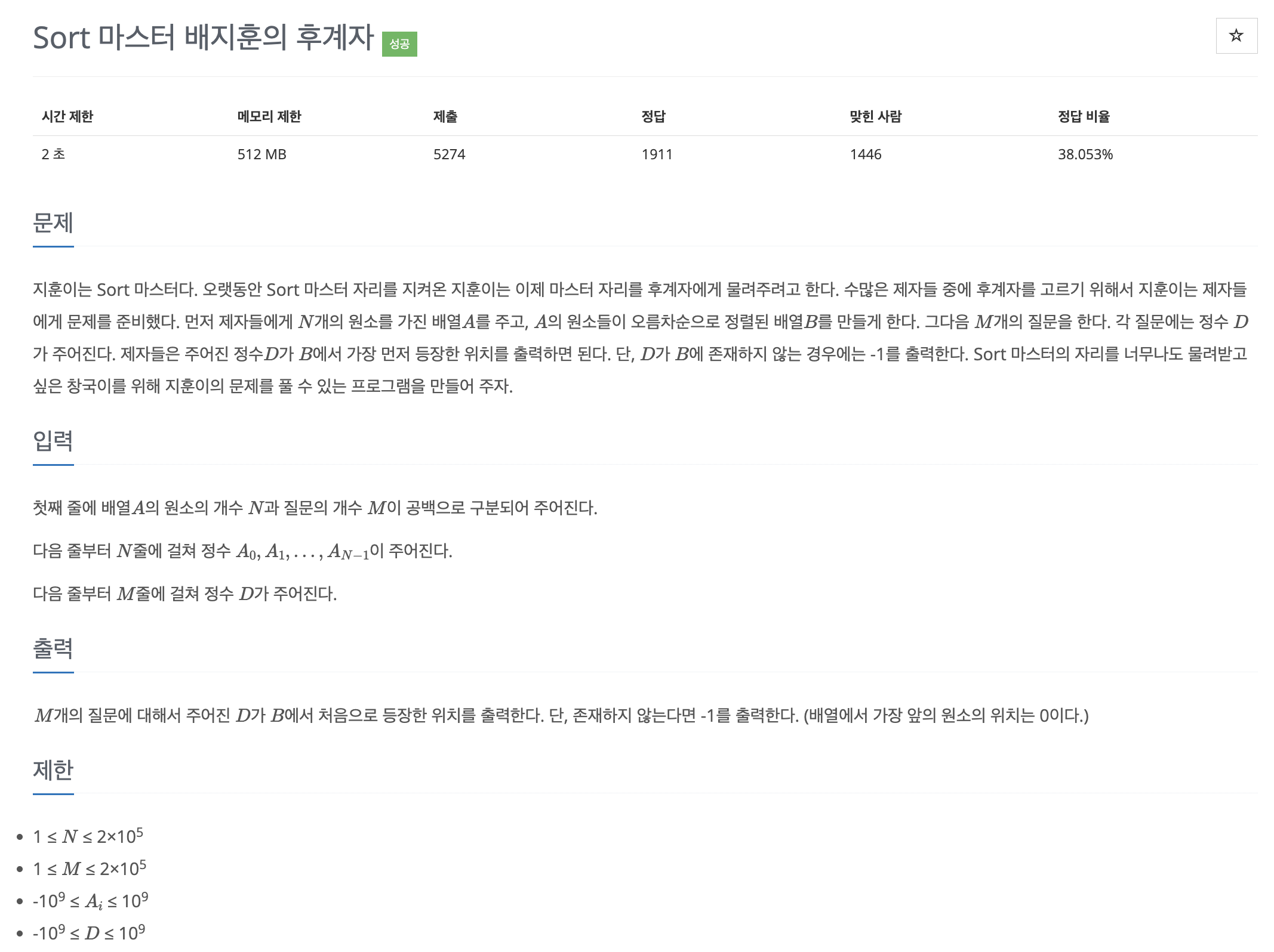 [Python] 백준 20551번 : Sort 마스터 배지훈의 후계자