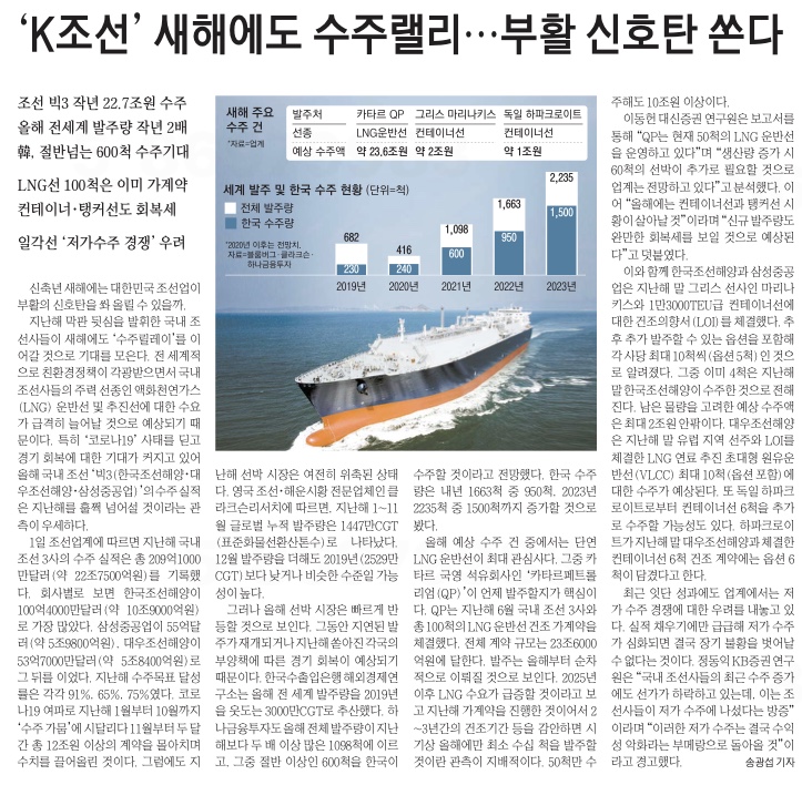 “'K조선' 새해에도 수주랠리... 부활 신호탄 쏜다”