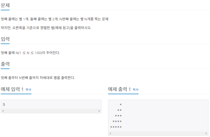 숫자 N을 입력하면 규칙에 의해 별을 출력하는 문제로 아래와 같다.